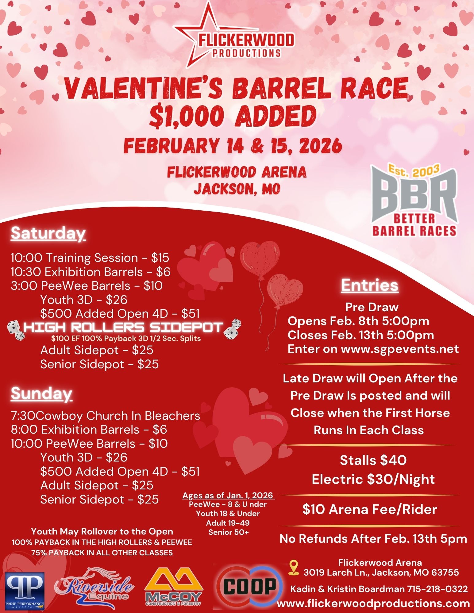 Flickerwood Productions Valentines Barrel Race - 02/14/2026 to 02/15/2026 - Flickerwood Arena - Jackson, MO