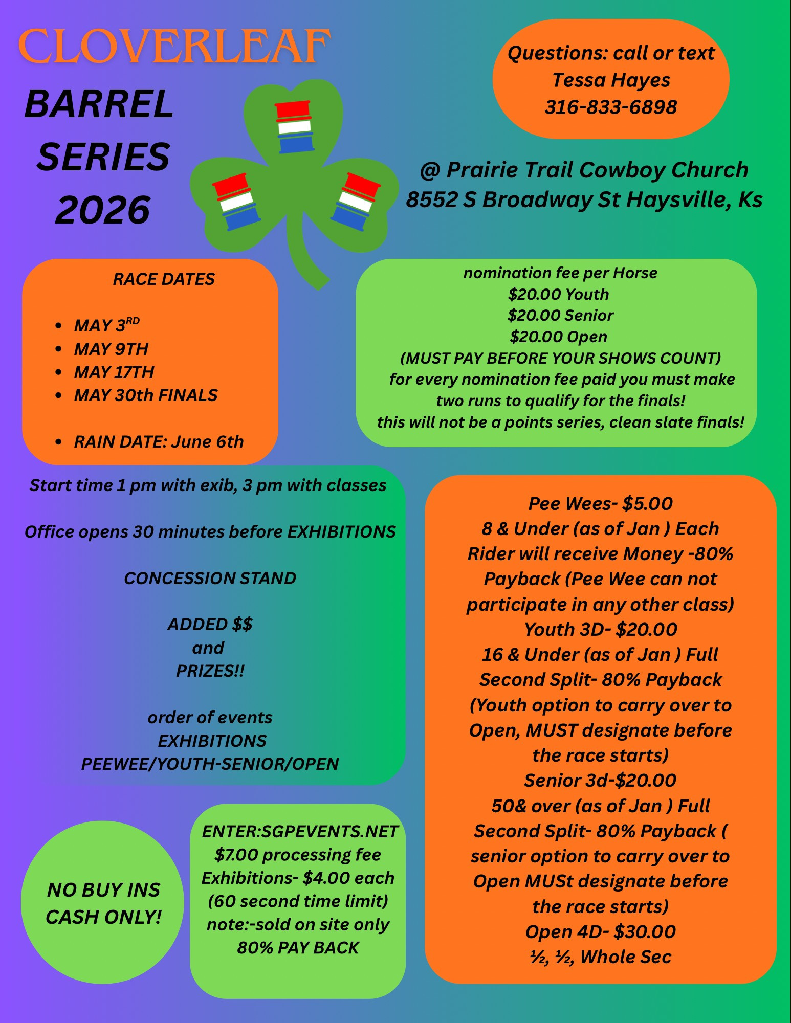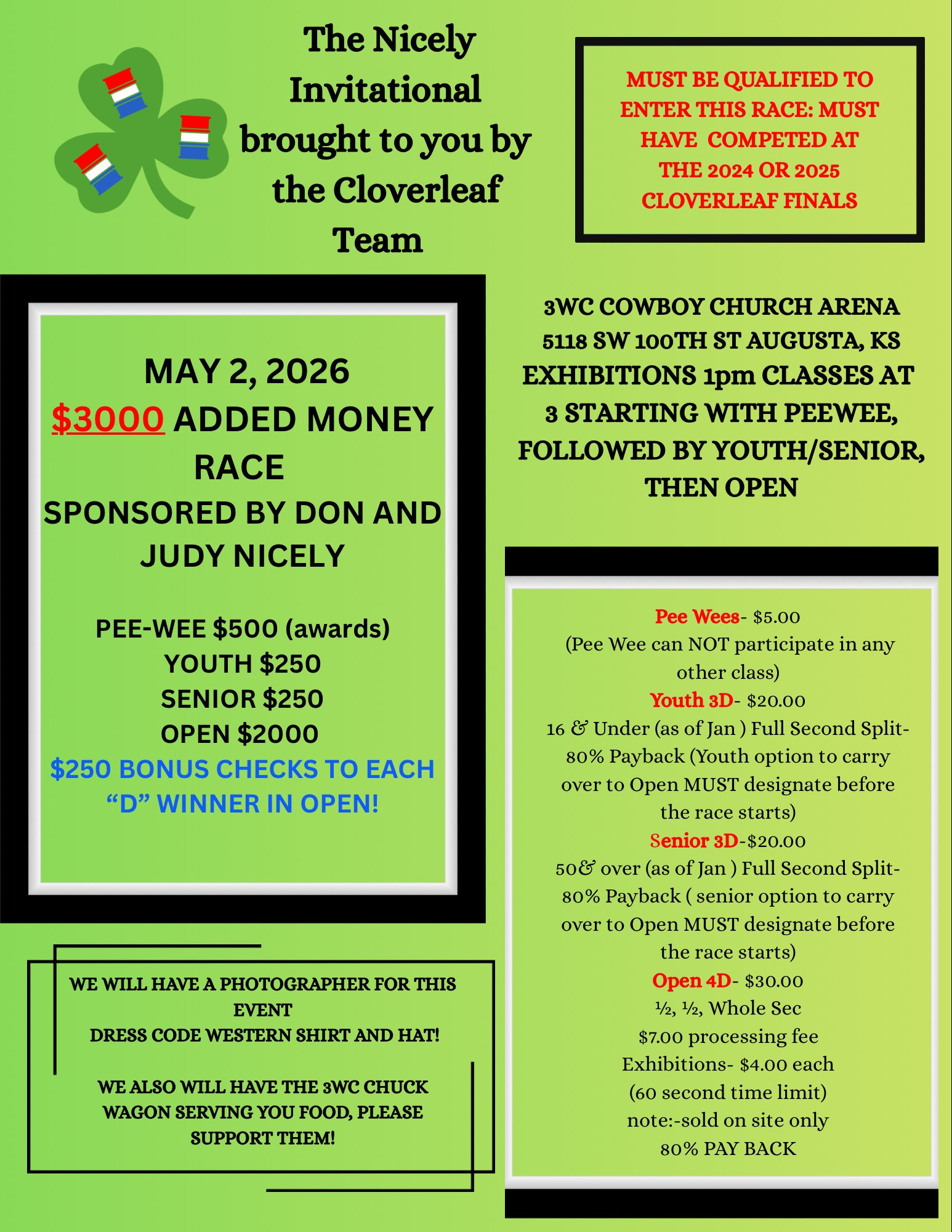 Cloverleaf and Nicely $2500 Added Invitational Race - 05/02/2026 to 04/26/2026 - 3 Crosses Cowboy Church - Augusta, KS