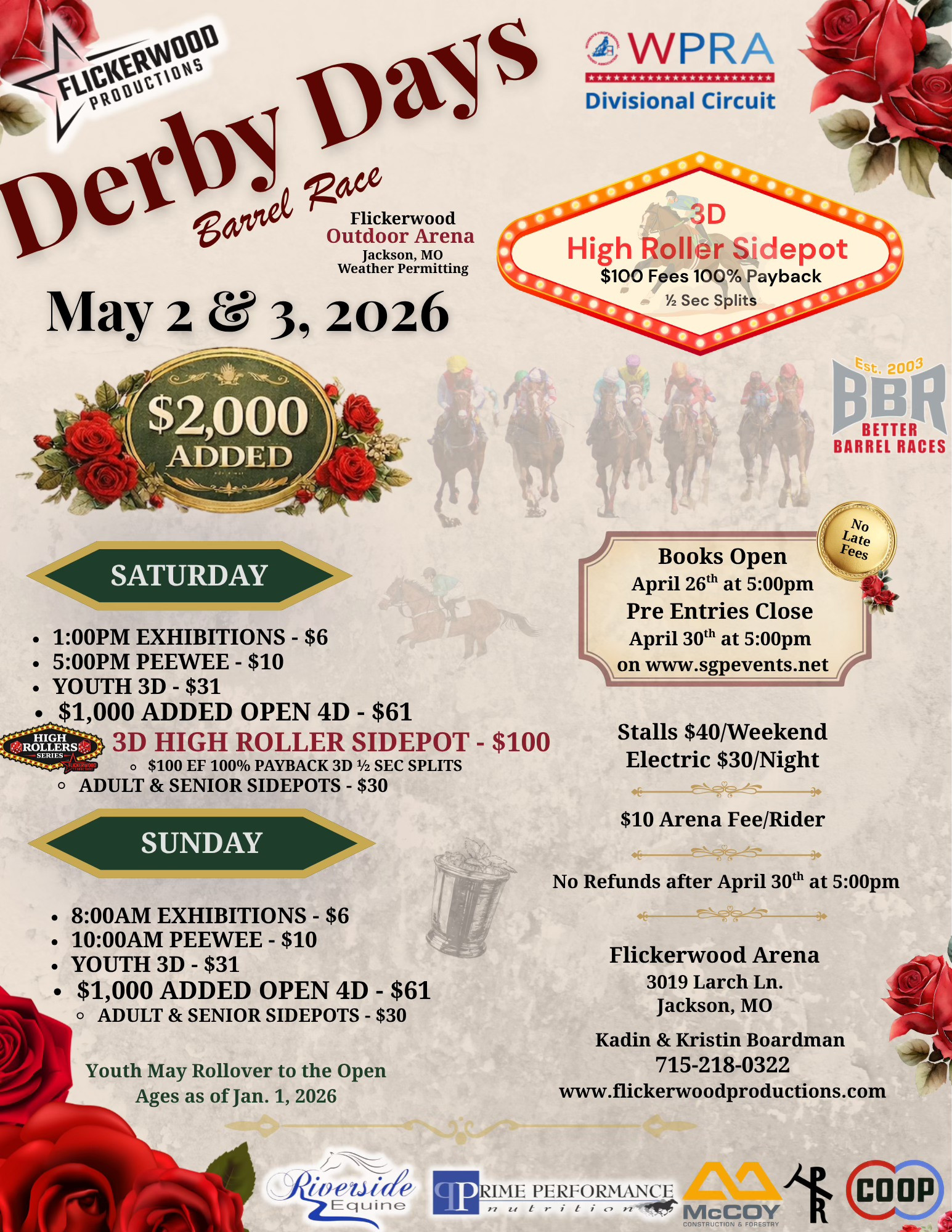 Flickerwood Productions Derby Days - 05/02/2026 to 05/03/2026 - Flickerwood Arena - Jackson, MO