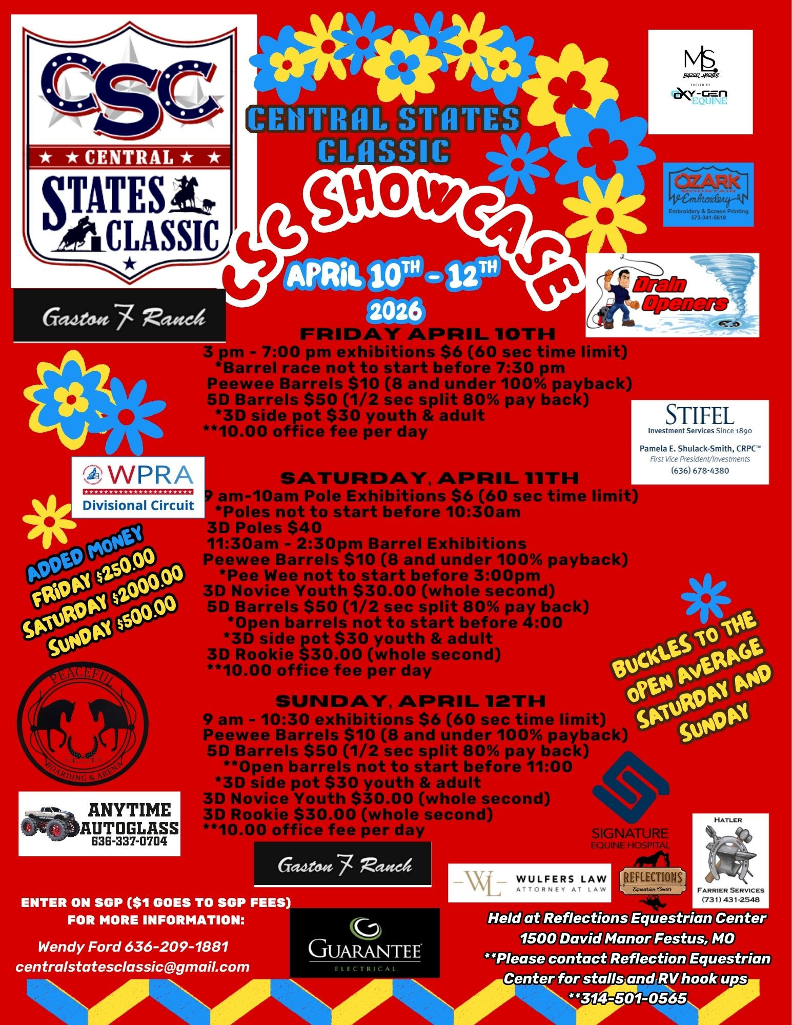 Central States Classic Showcase - 04/10/2026 to 04/12/2026 - Reflection Event Center - Festus, MO| Pos | Horse | Owner | Total $ |