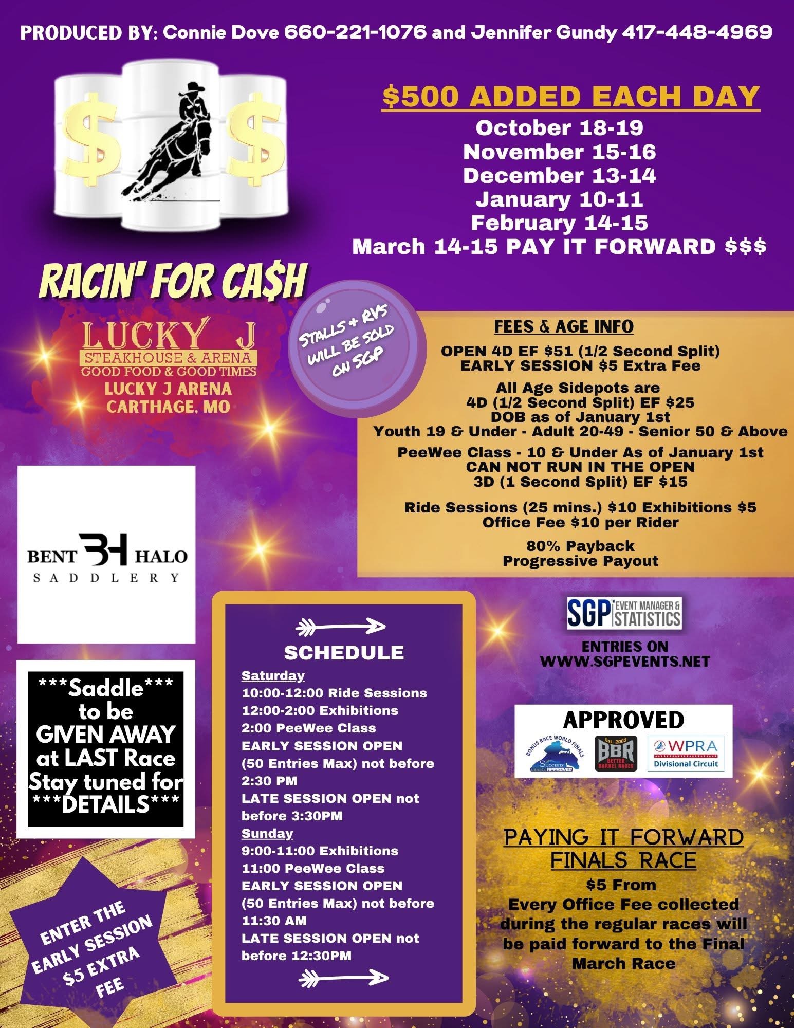 $500 Racin For Cash Race-HOOEY Jr Patriot on Sat. - 11/15/2025 to 11/16/2025 - Lucky J Steakhouse & Arena - Carthage, MO