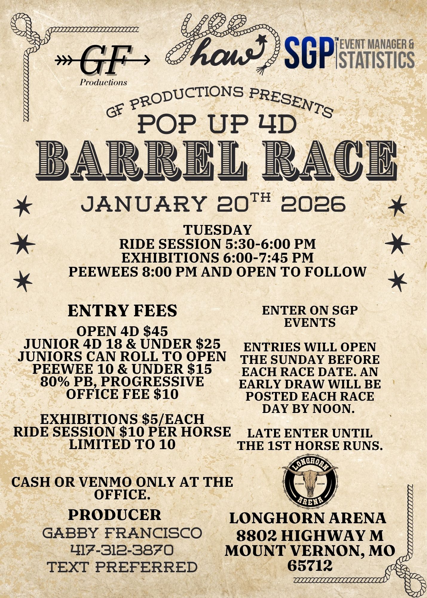 $500 Added & Buckles- SSP Barrel Race - 01/17/2026 - Skywass Ranch - Sperry, OK