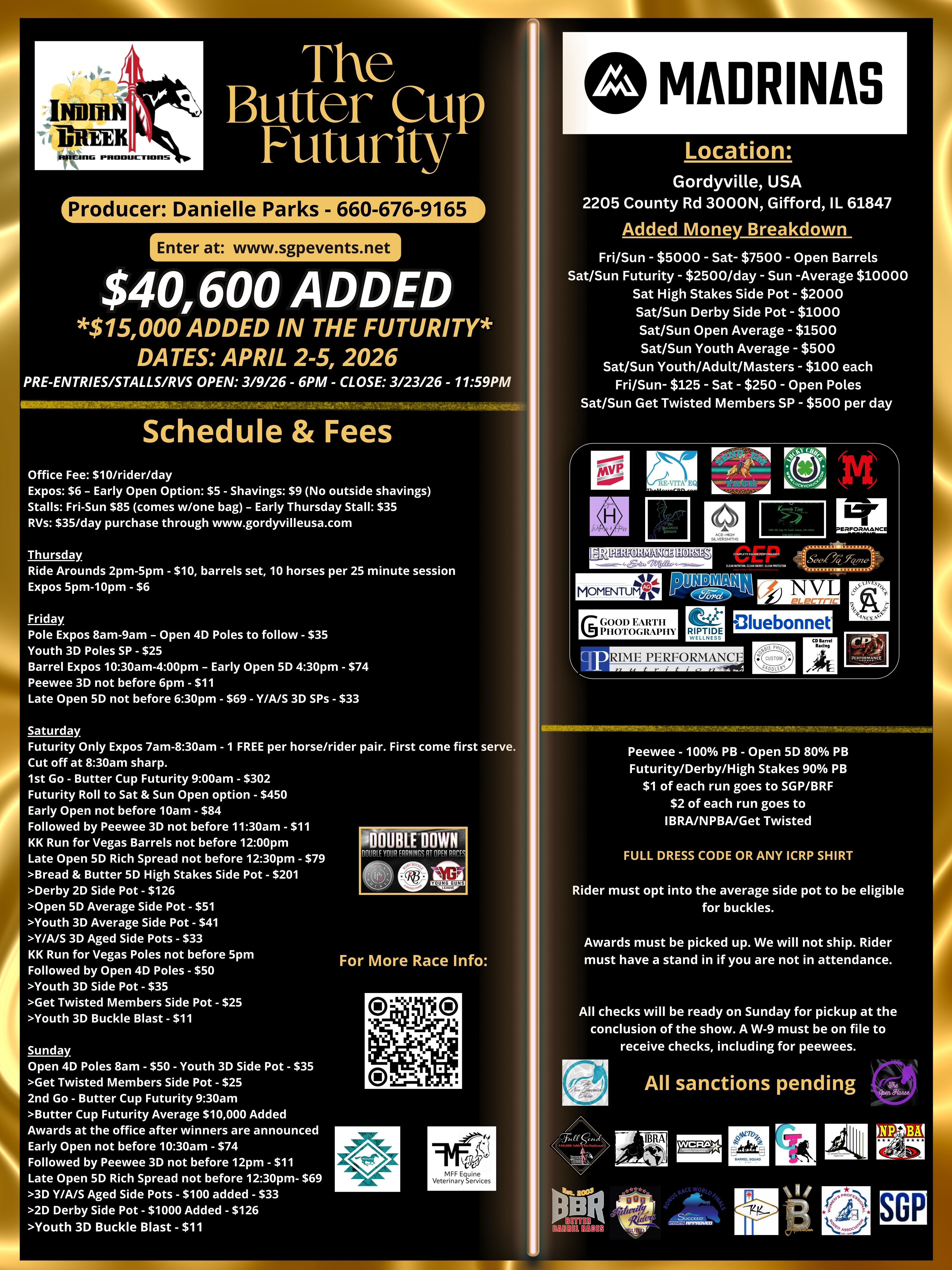 ICRP $40600 Butter Cup Futurity - 04/02/2026 to 04/05/2026 - Gordyville Arena - Gifford, IL