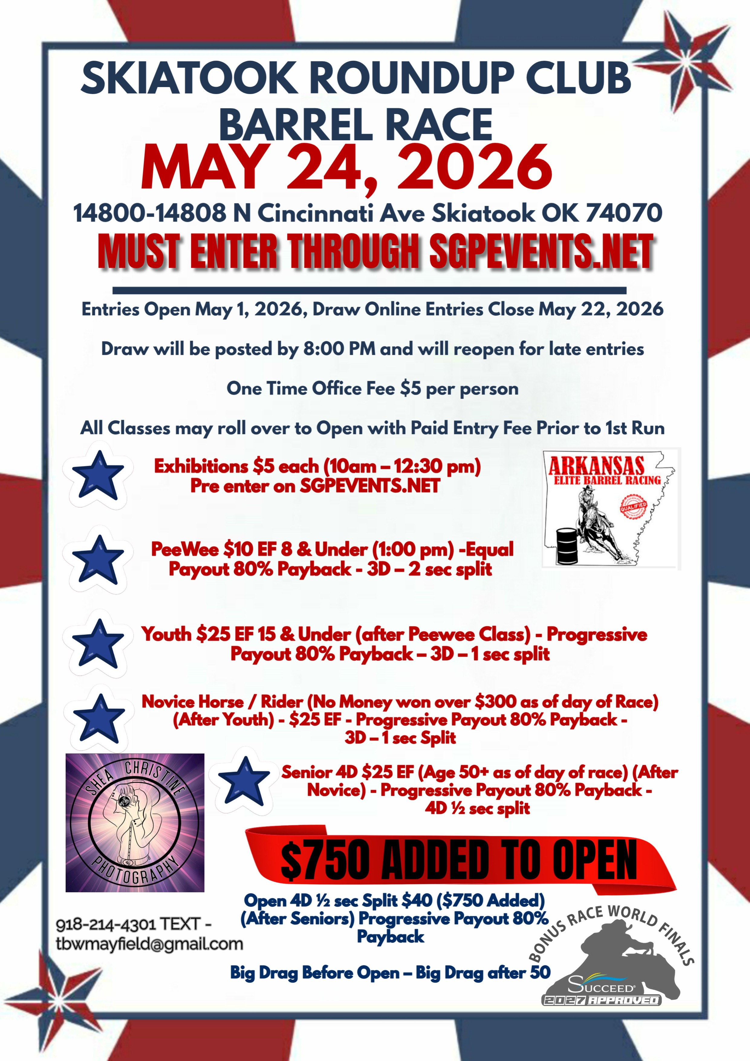Siloam Springs Barrel Race - 05/09/2026 - Siloam Springs Riding Club - Siloam Springs, AR