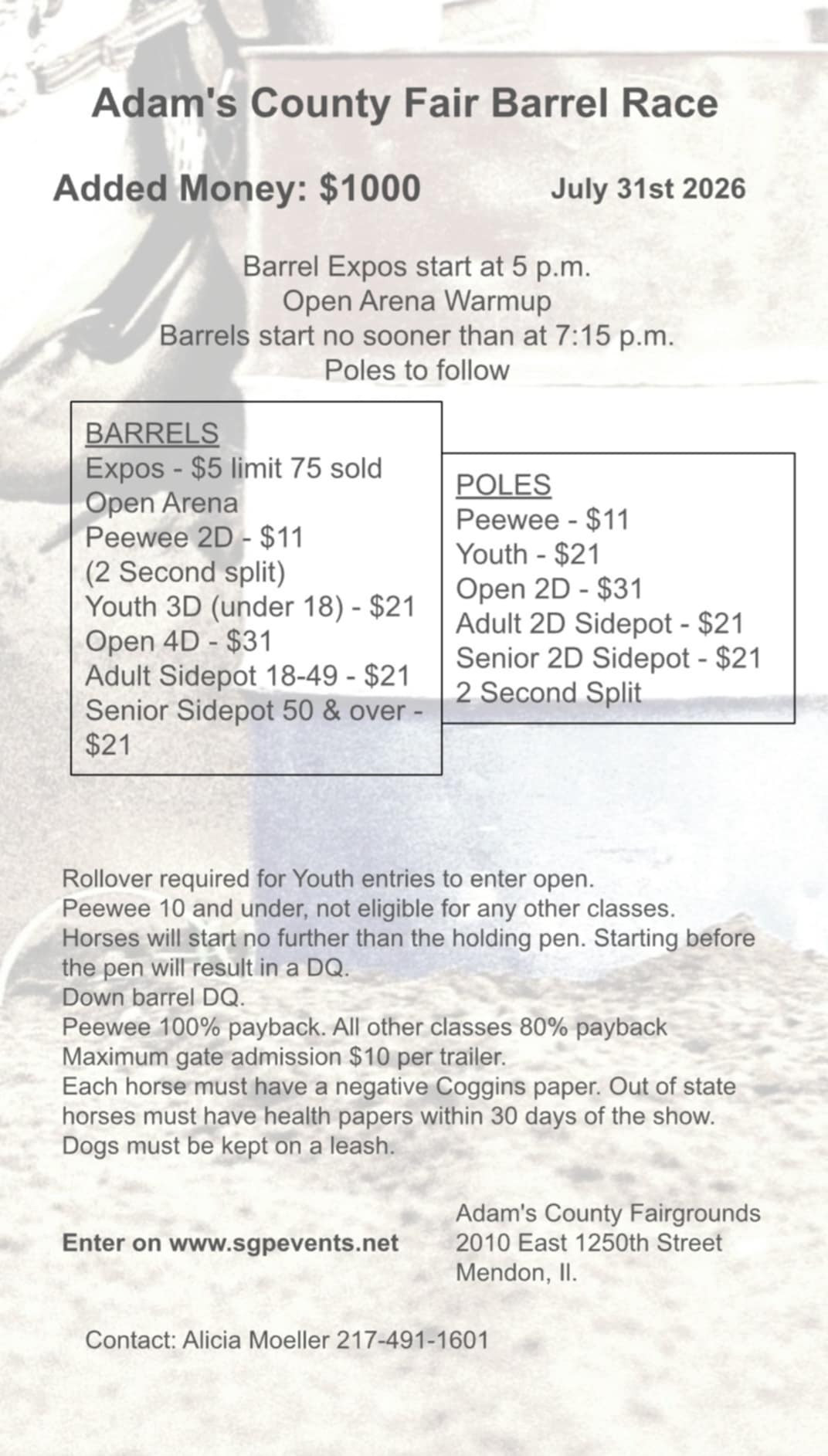 Adams County Barrel Race - 07/31/2026 - Adams County Fairgrounds - Mendon, IL