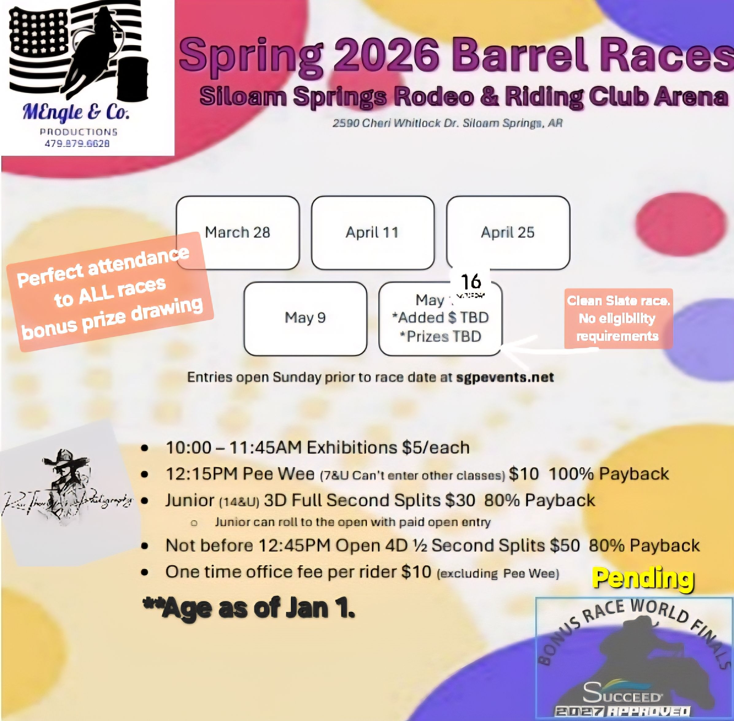 Siloam Springs Barrel Race - 05/16/2026 - Siloam Springs Riding Club - Siloam Springs, AR