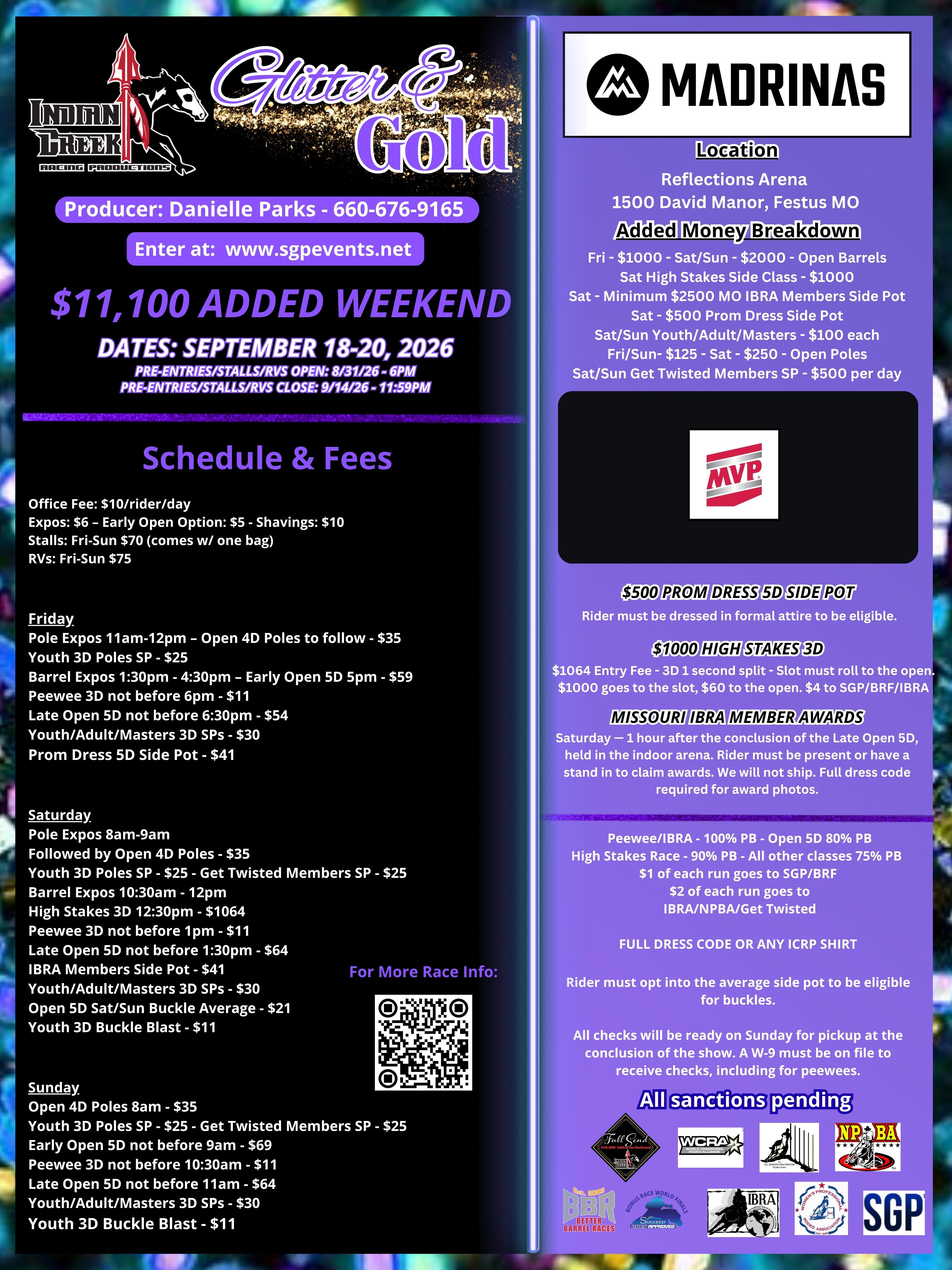 ICRP $11100 Glitter & Gold & High Stakes Race - 09/18/2026 to 09/20/2026 - Reflection Event Center - Festus, MO