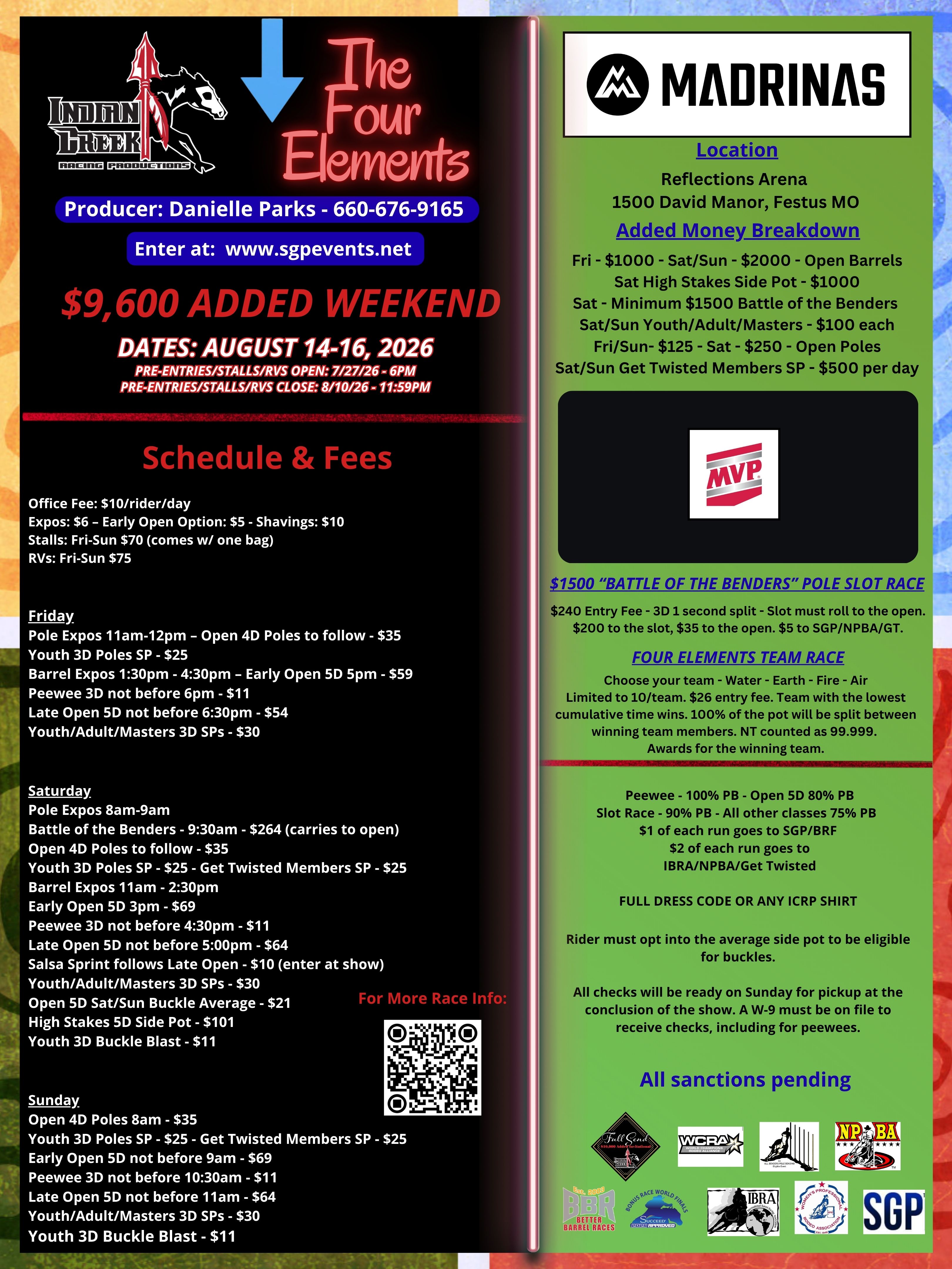 ICRP $9600 Four Elements & Pole Slot Race - 08/14/2026 to 08/16/2026 - Reflection Event Center - Festus, MO