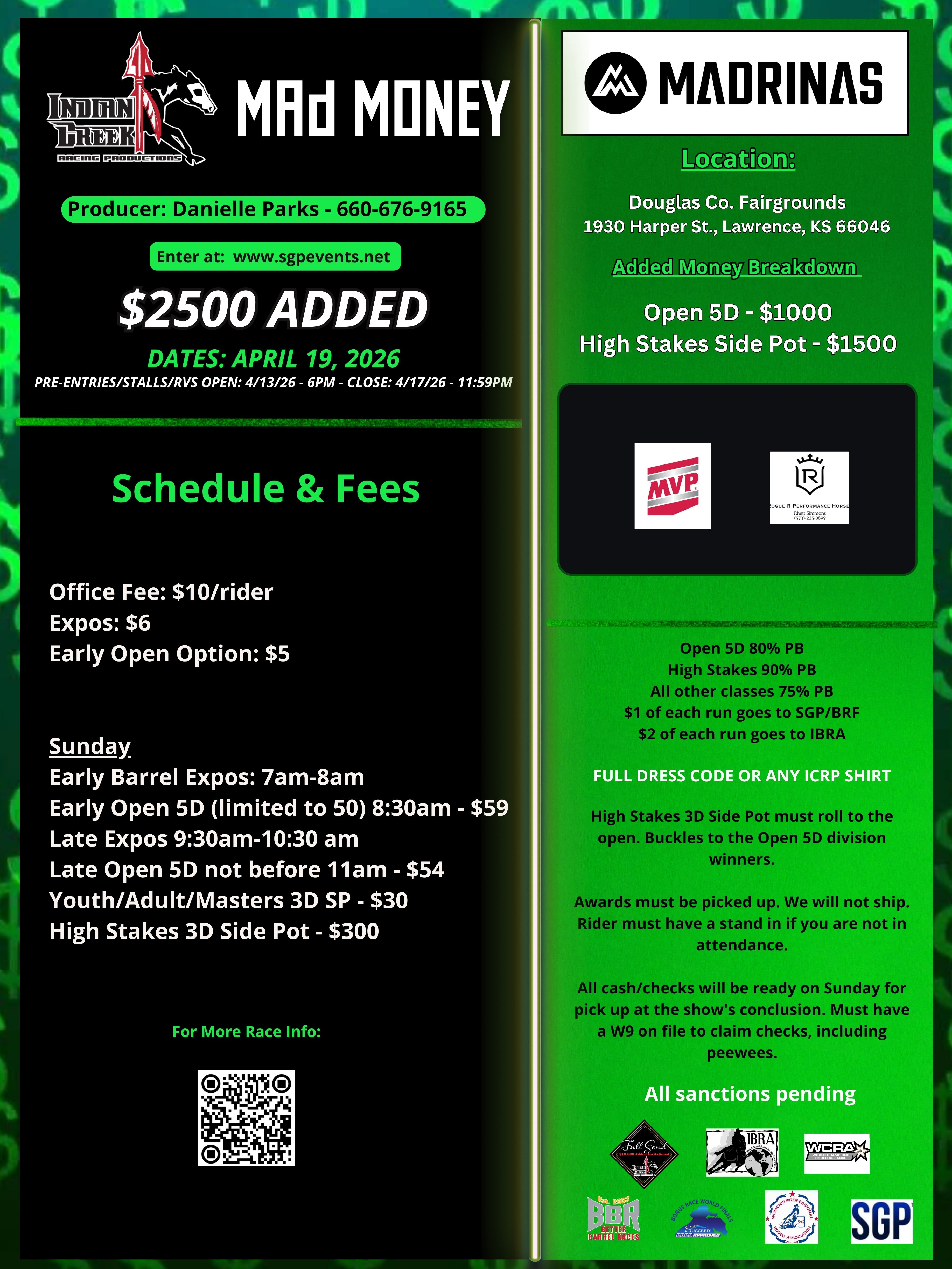 ICRP $2500 Mad Money & High Stakes - 04/19/2026 - Douglas County Fair - Lawrence , KS