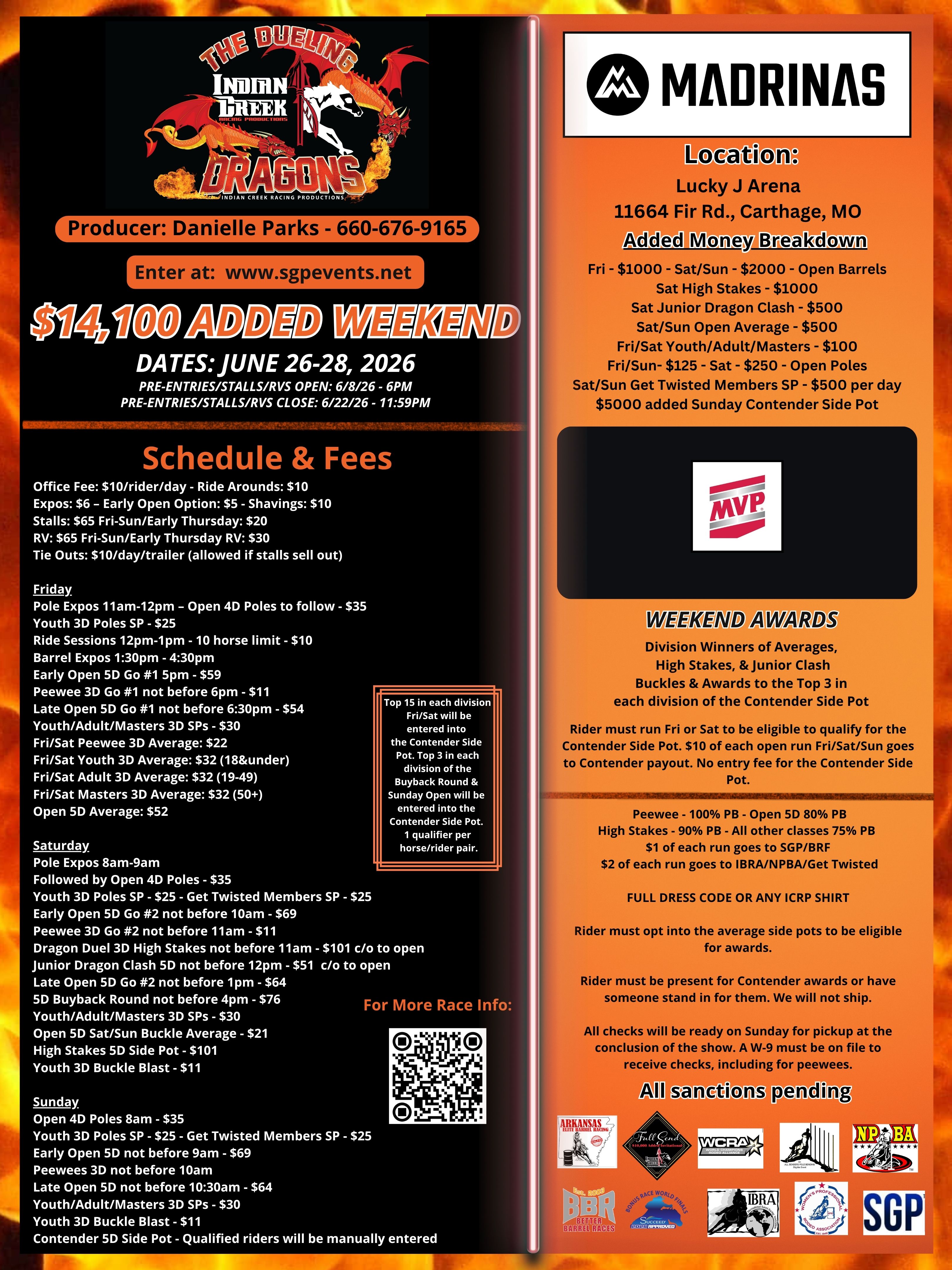 ICRP $14100 Dueling Dragons - 06/26/2026 to 06/28/2026 - Lucky J Steakhouse & Arena - Carthage, MO4 events