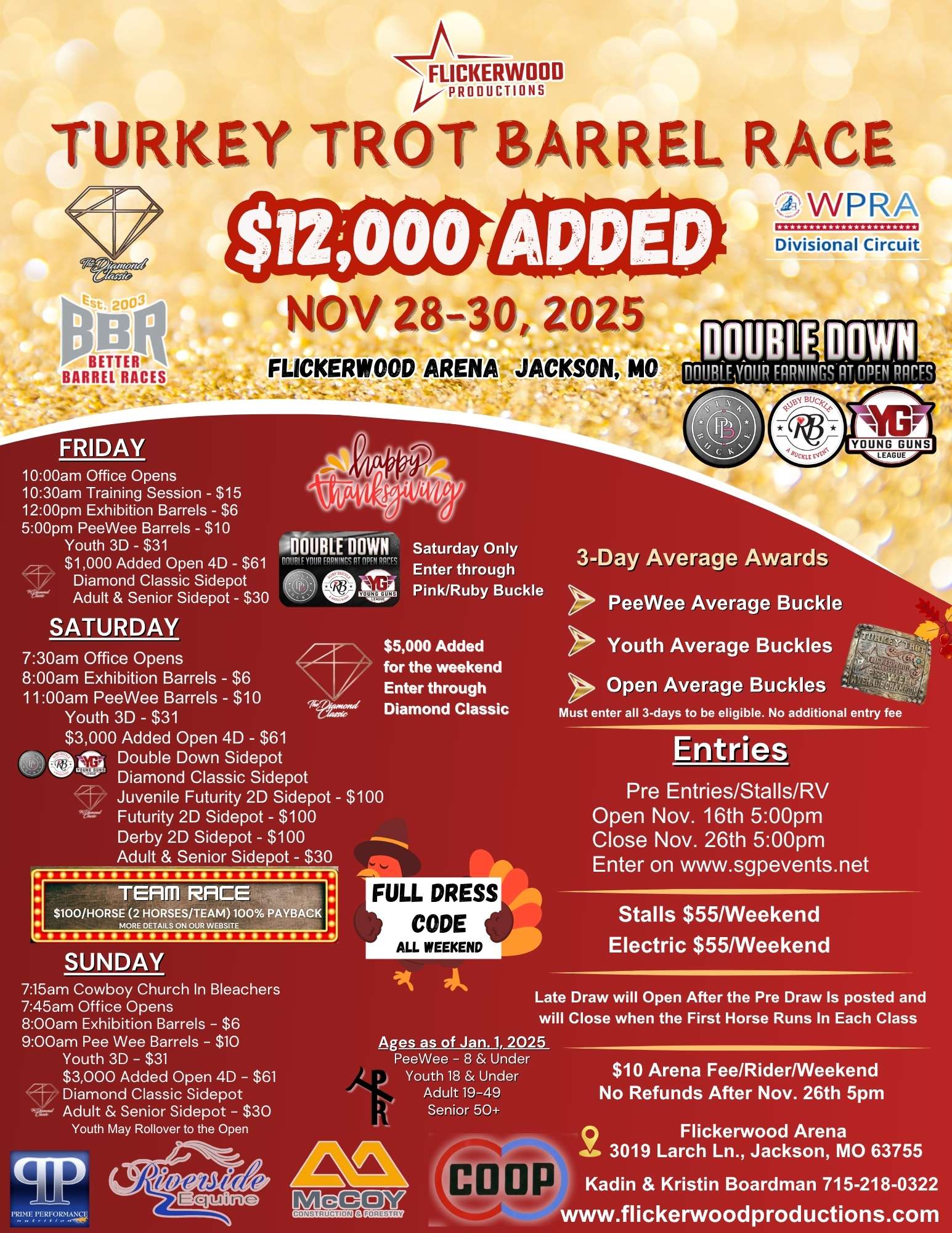 Flickerwood Productions Turkey Trot Show - 11/28/2025 to 11/30/2025 - Flickerwood Arena - Jackson, MO