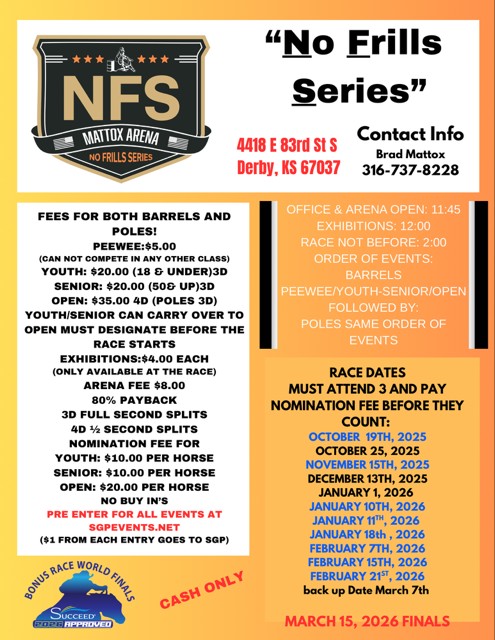 No Frills Series 2025/2026 FINALS - 03/15/2026 - Mattox Arena - Derby, KS