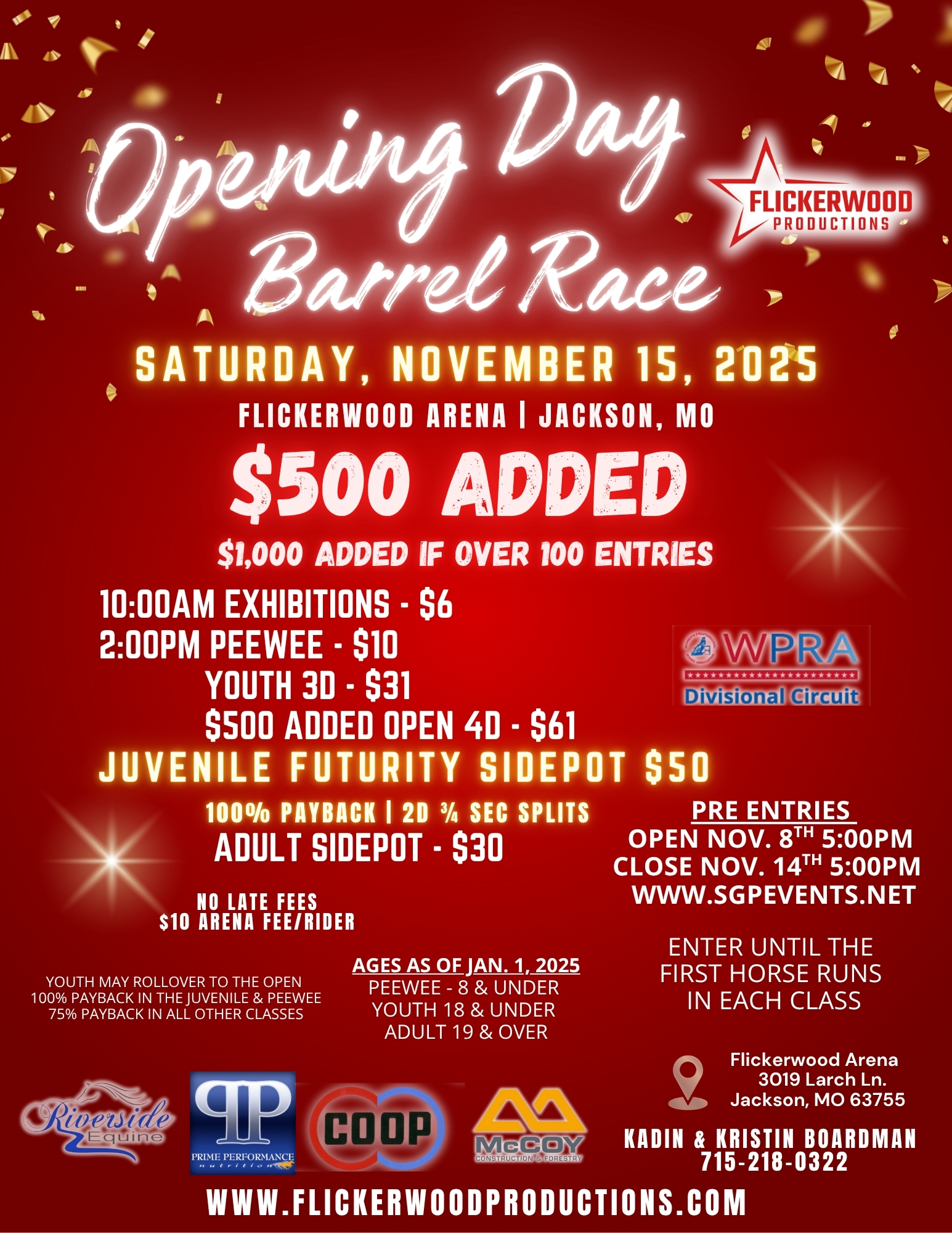 Flickerwood Productions Opening Day Race - 11/15/2025 - Flickerwood Arena - Jackson, MO