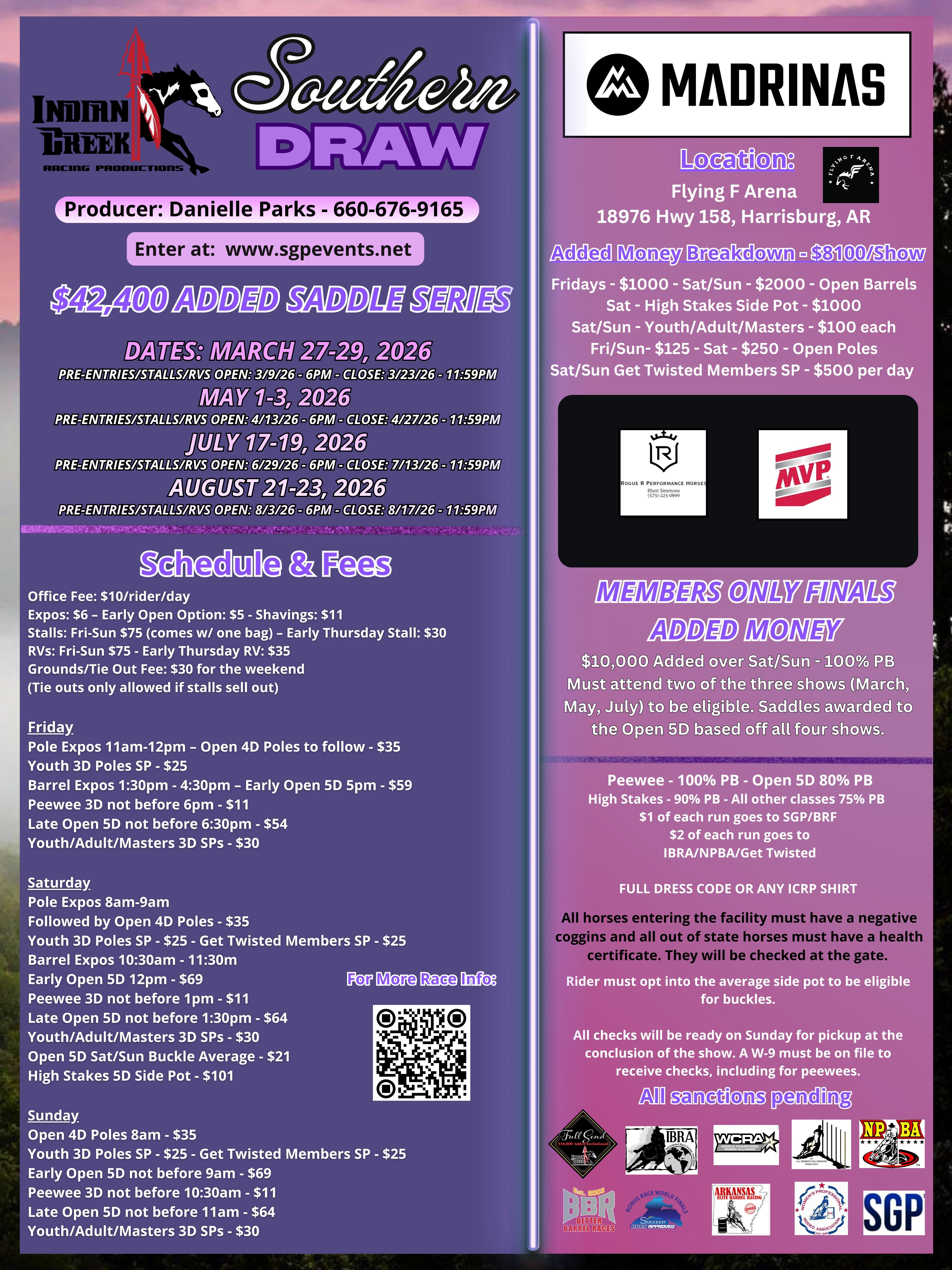 ICRP $8100 Southern Draw Series Weekend #2 - 05/01/2026 to 05/03/2026 - Flying F Arena - Harrisburg, AR