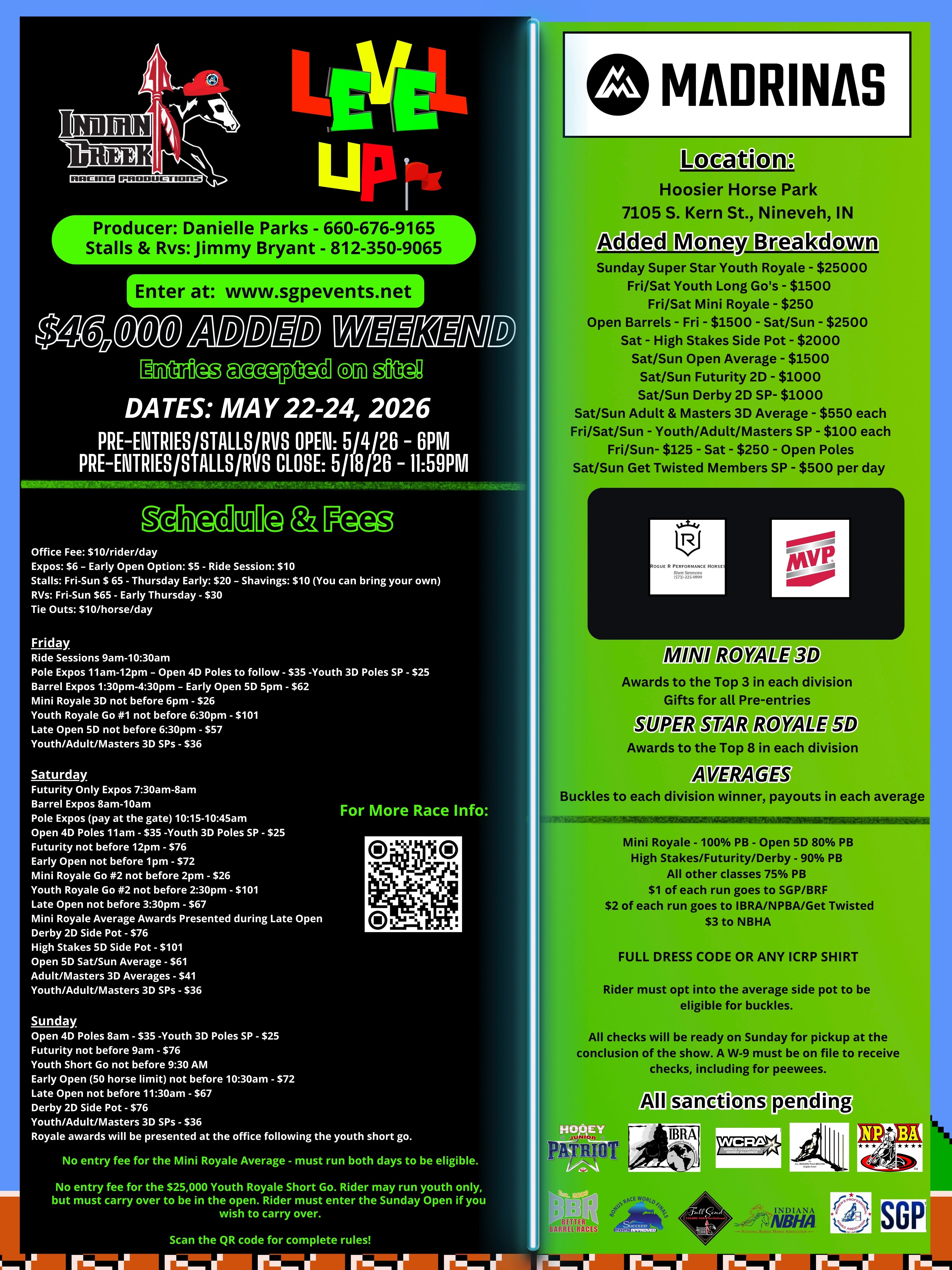 ICRP $46000 Level Up Youth & Open Show - 05/22/2026 to 05/24/2026 - Hoosier Horse Park - Franklin , IN