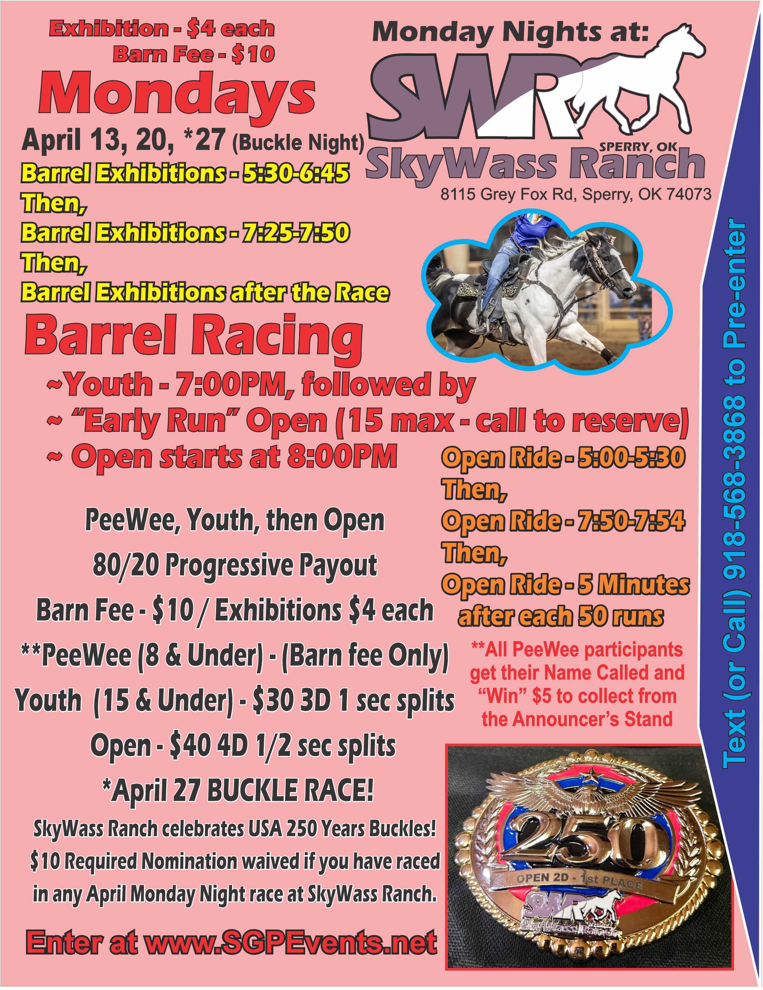 Monday Night at Skywass Ranch - 04/27/2026 - Skywass Ranch - Sperry, OK